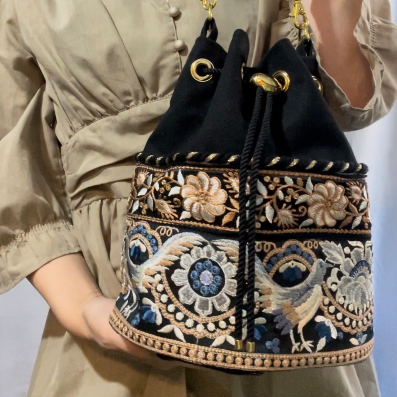 ▷インド製の華やかな刺繍リボン×日本製の上質な帆布⛵️