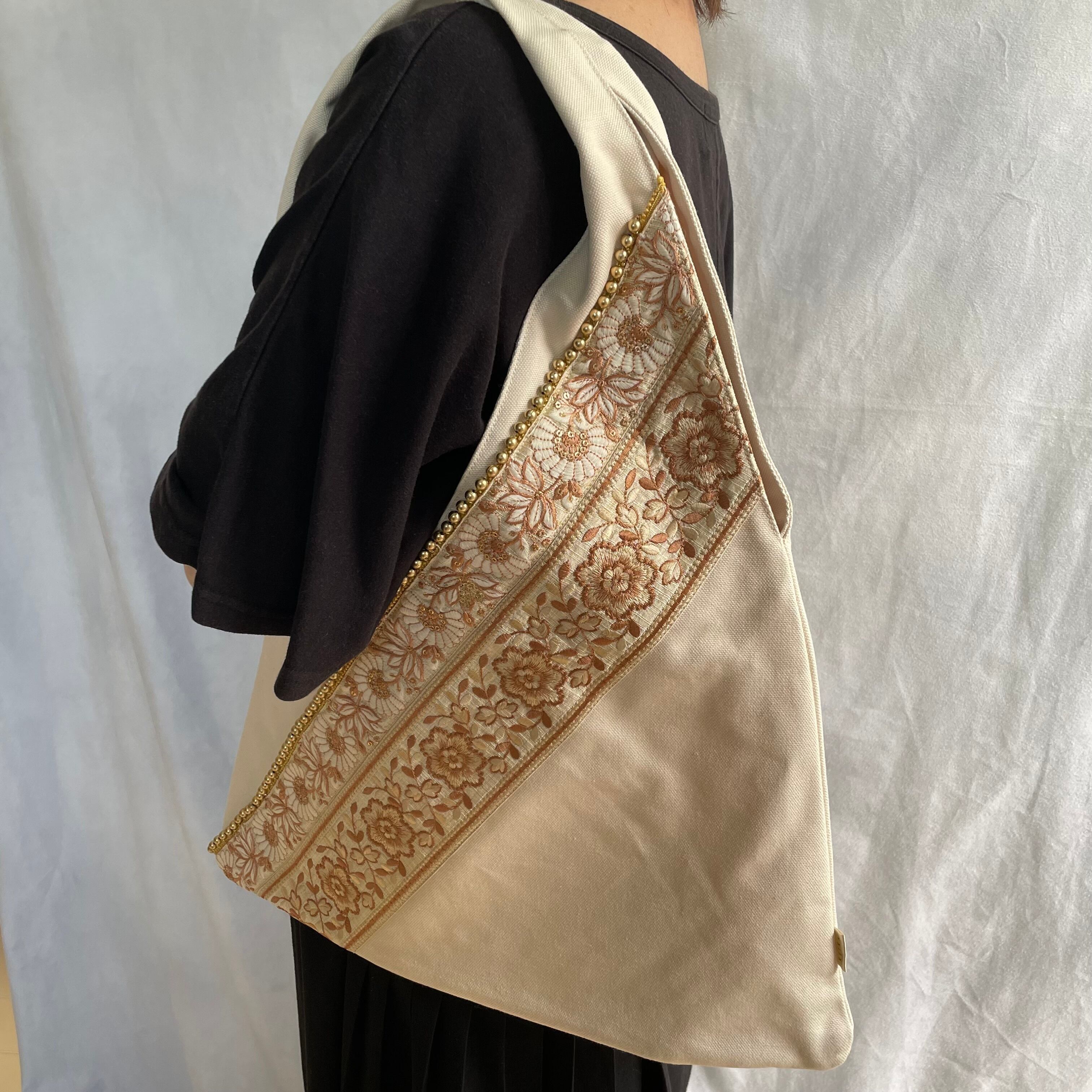 ▷インド製の華やかな刺繍リボン×日本製の上質な帆布⛵️