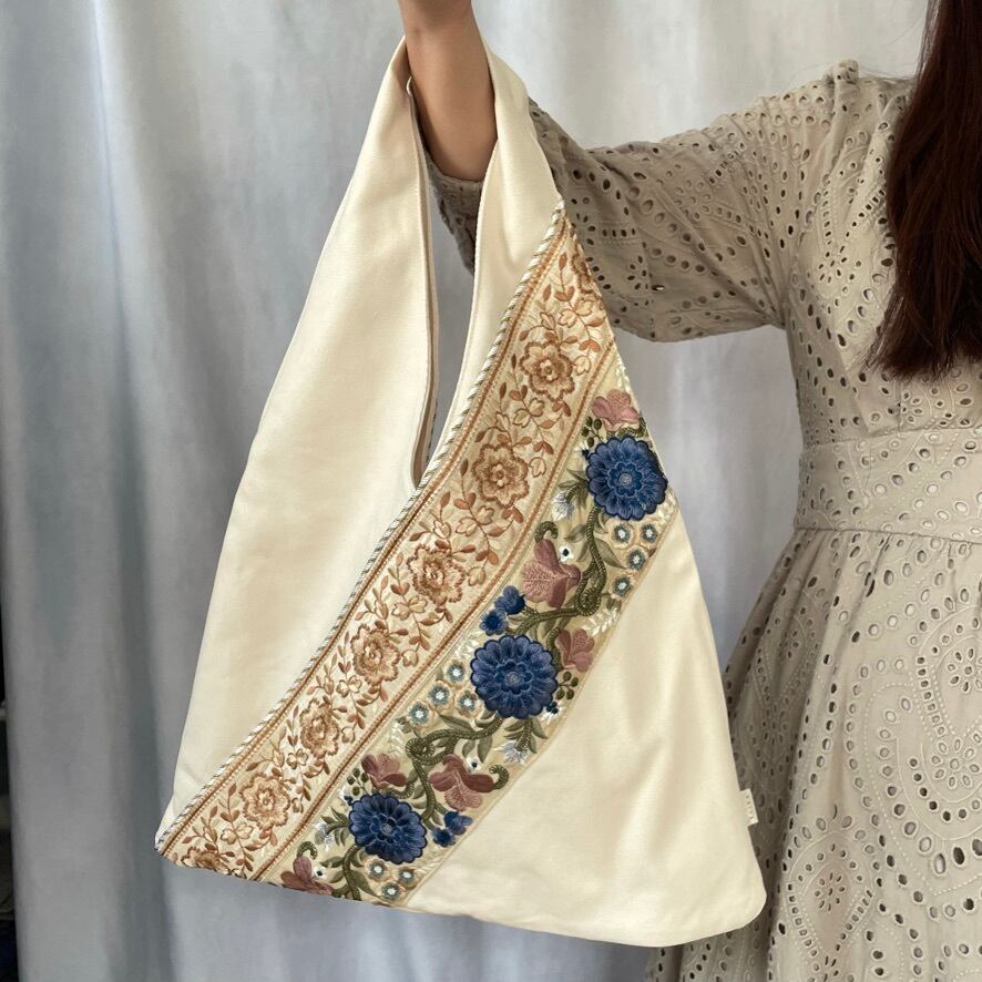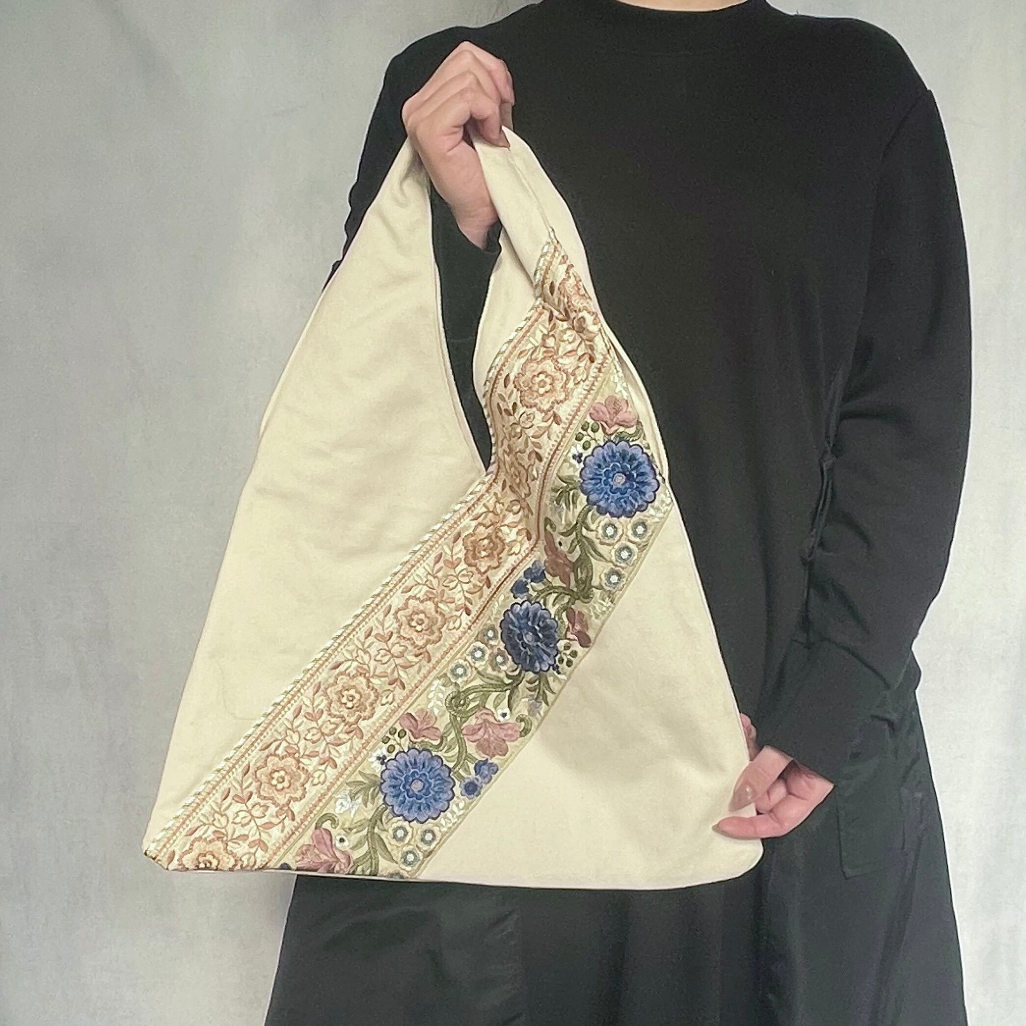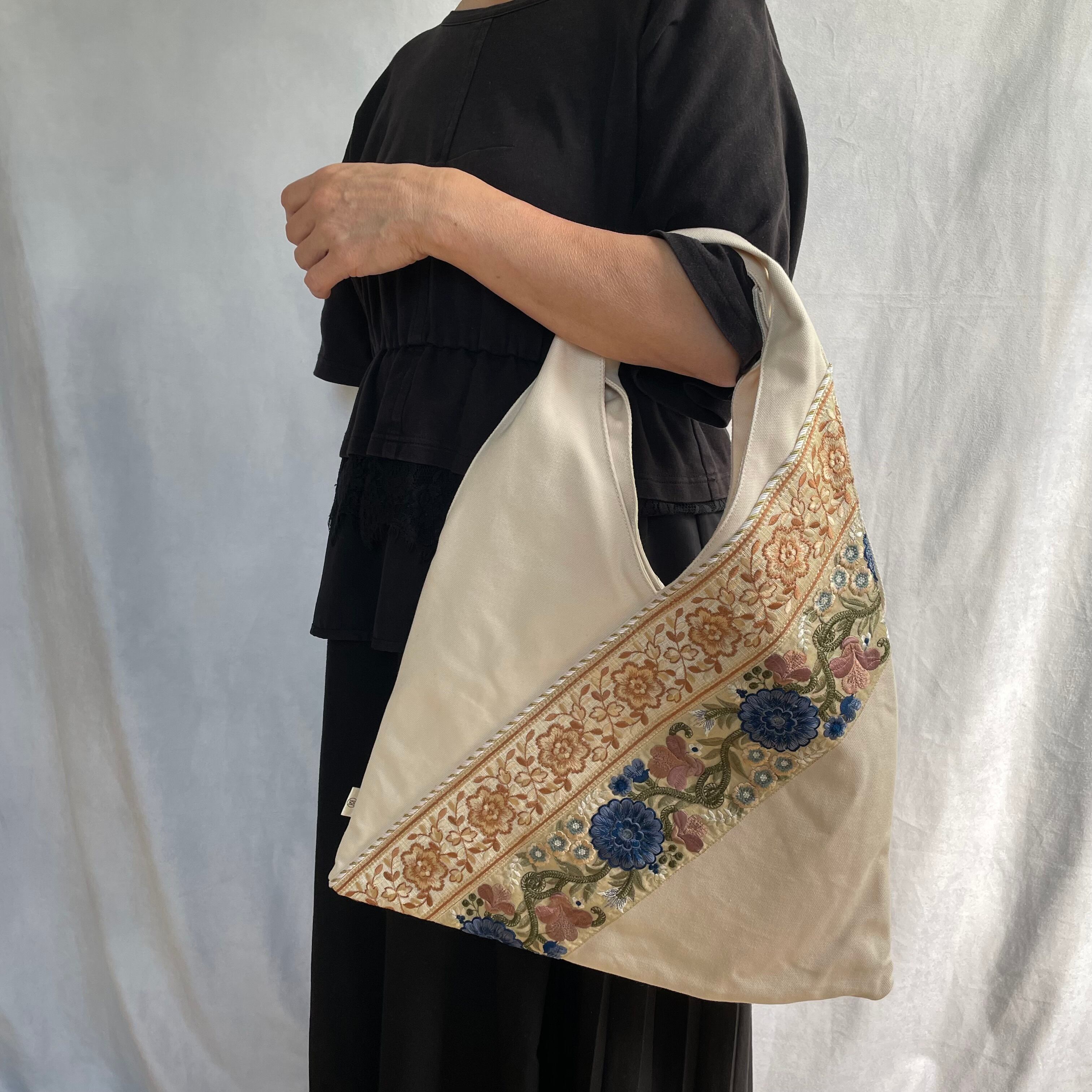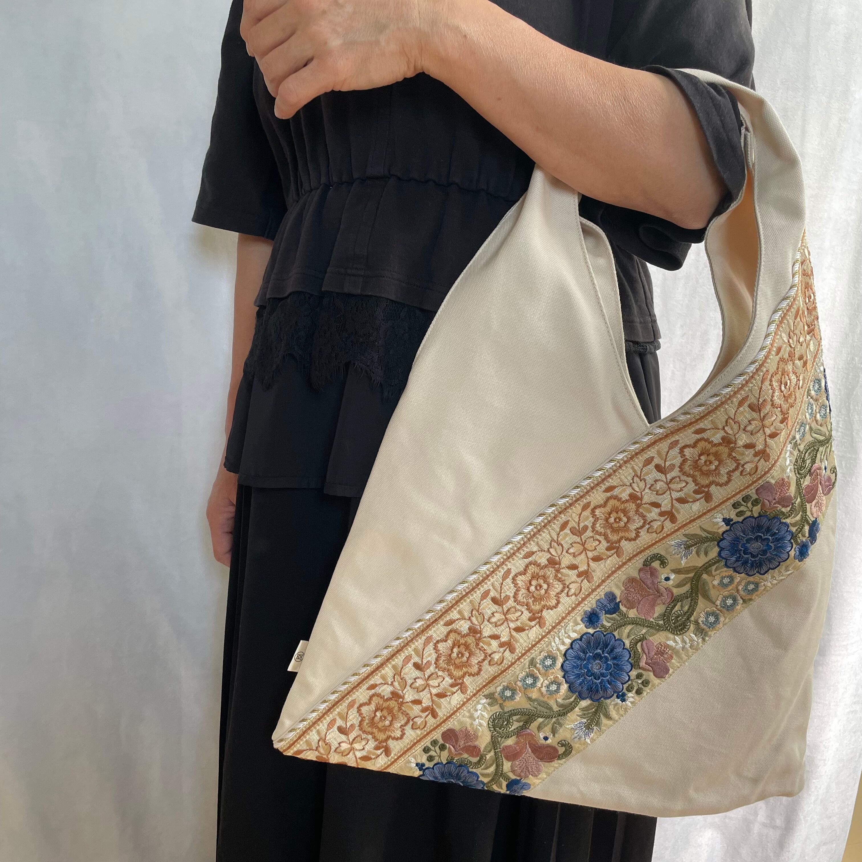 ▷インド製の華やかな刺繍リボン×日本製の上質な帆布⛵️