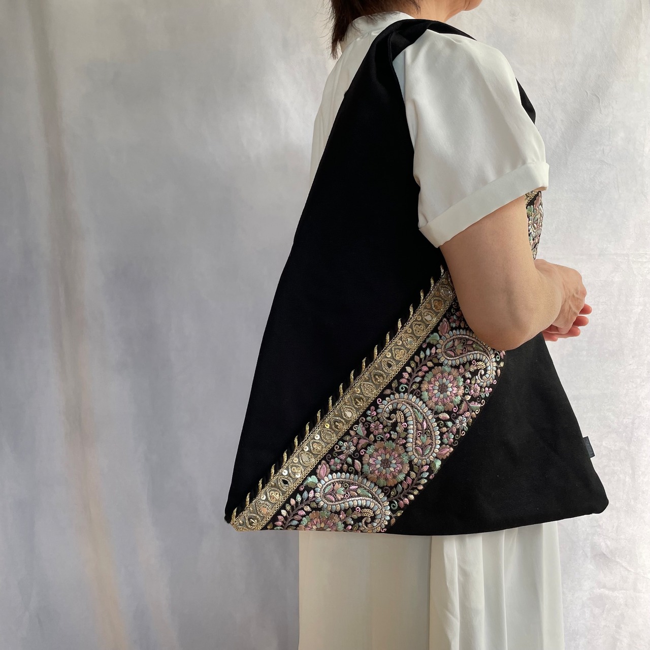 ▷インド製の華やかな刺繍リボン×日本製の上質な帆布⛵️