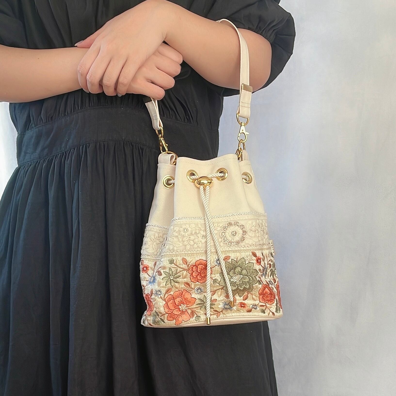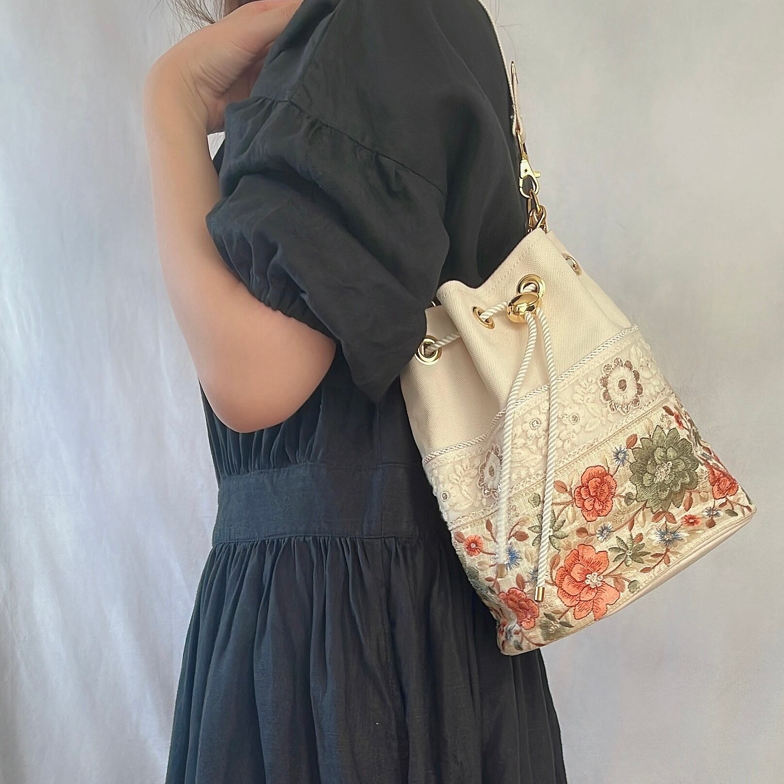 ▷インド製の華やかな刺繍リボン×日本製の上質な帆布⛵️
