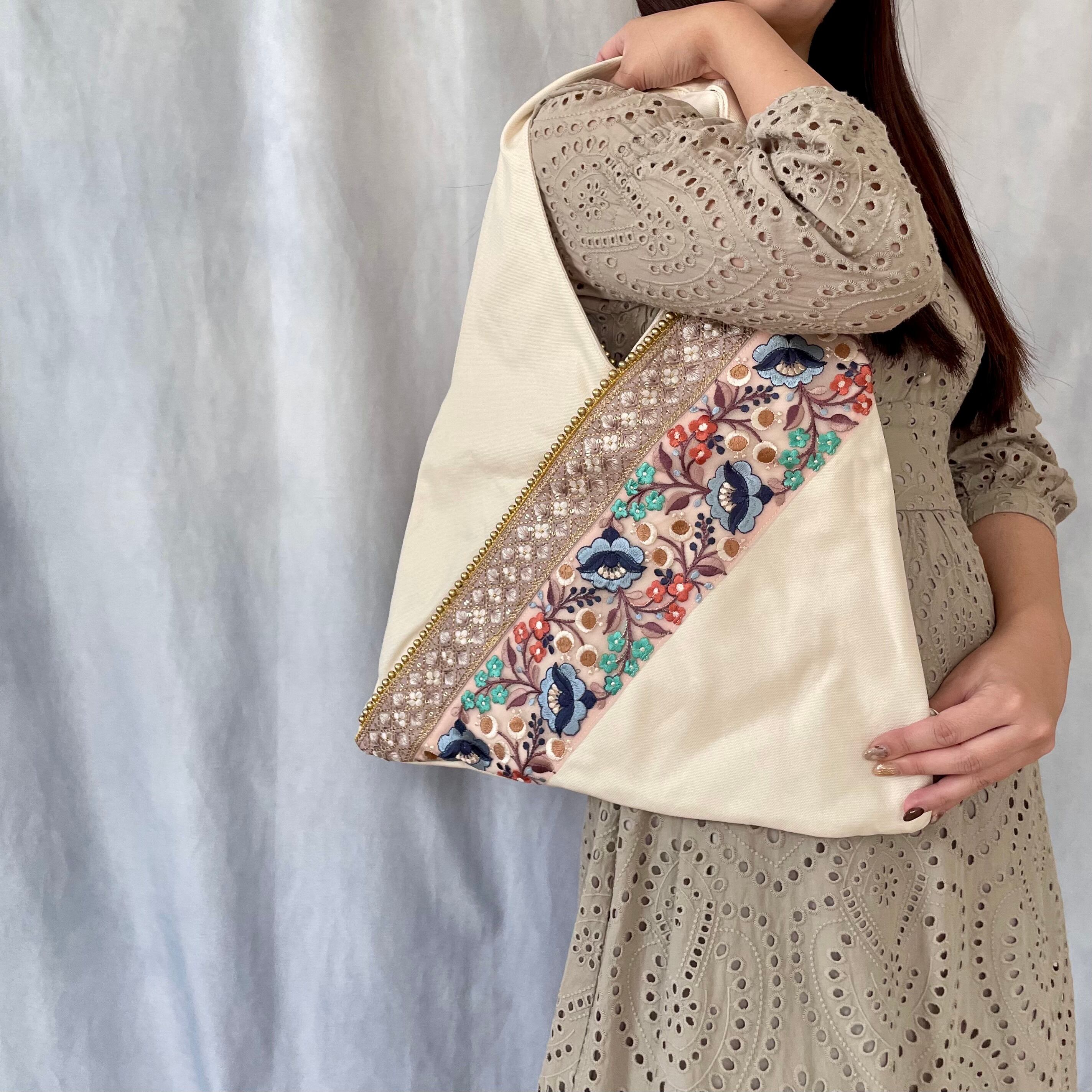▷インド製の華やかな刺繍リボン×日本製の上質な帆布⛵️