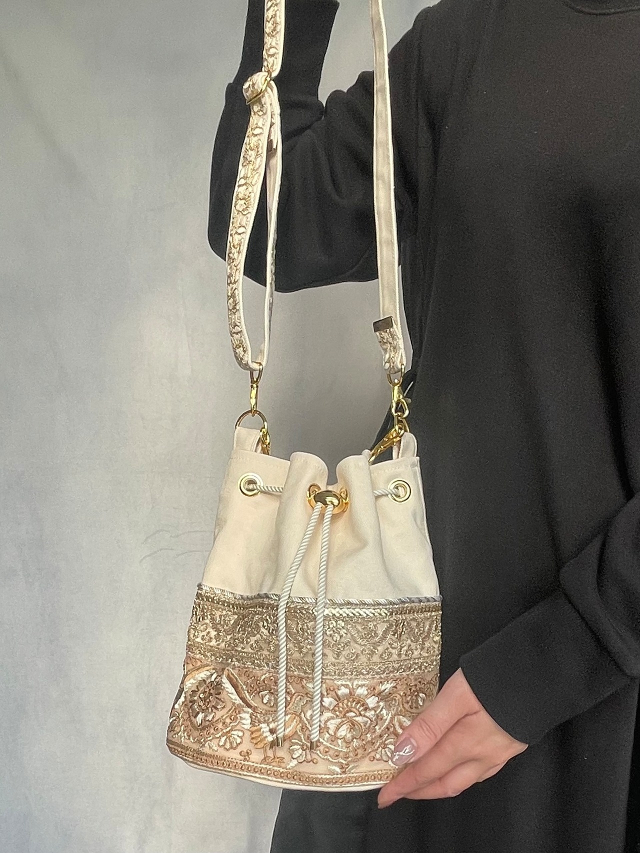 ▷インド製の華やかな刺繍リボン×日本製の上質な帆布⛵️